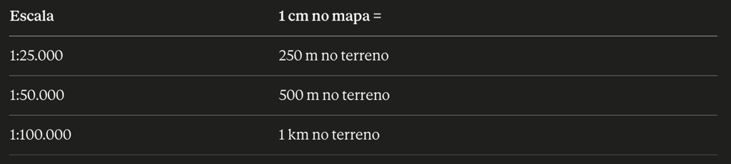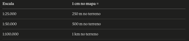 A escala define quanto terreno real cada centímetro do mapa representa: