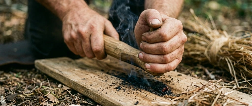 Mesmo sabendo todas as técnicas, é sempre bom carregar: pederneira portátil (firesteel), esca de algodão com vaselina, e um pequeno isqueiro à prova d'água. A preparação é parte da sobrevivência.