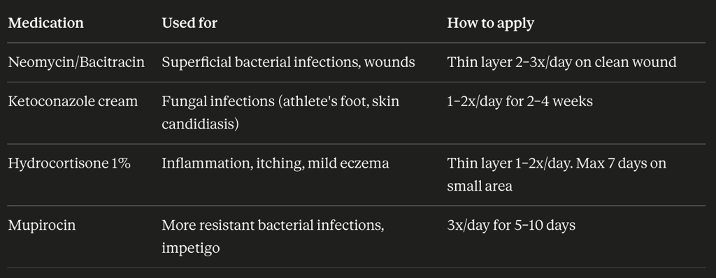 ⚠️ Never use topical corticosteroids on: open wounds, fungal or bacterial infections without simultaneous specific treatment, or on the face for more than 7 days without medical guidance.