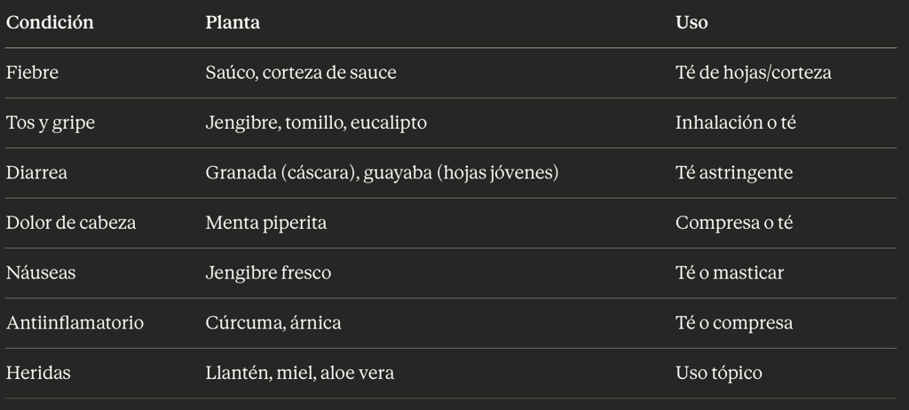 PLANTAS MEDICINALES PARA CONDICIONES COMUNES