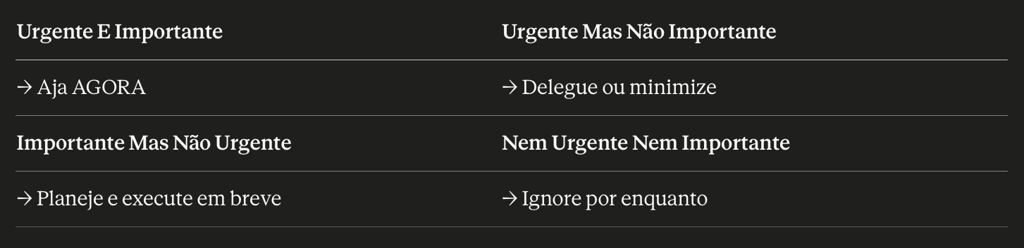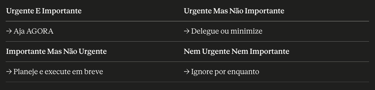 ❌ Nem urgente nem importante: sinal de celular (não muda nada agora)