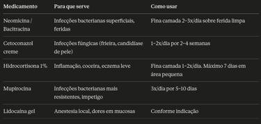⚠️ Nunca use corticoides tópicos em: feridas abertas, infecções (fúngicas ou bacterianas) sem tratamento específico simultâneo, ou por mais de 7 dias em face sem orientação médica.